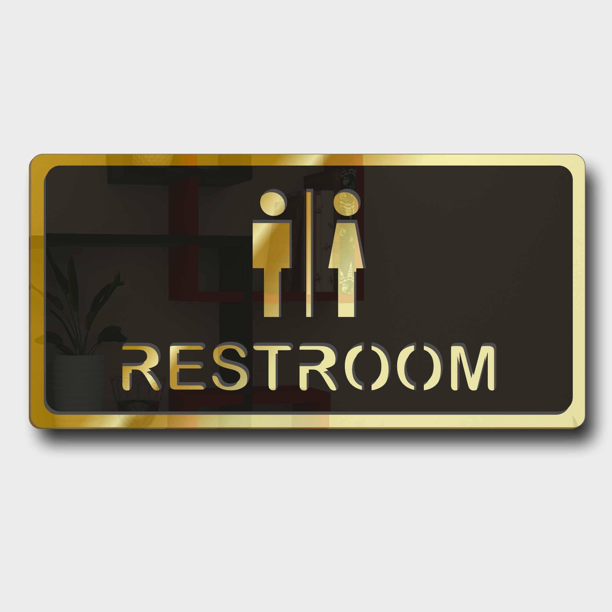Upgrade your space with elegance and clarity using our Restroom Sign Board – Golden Mirror Acrylic.