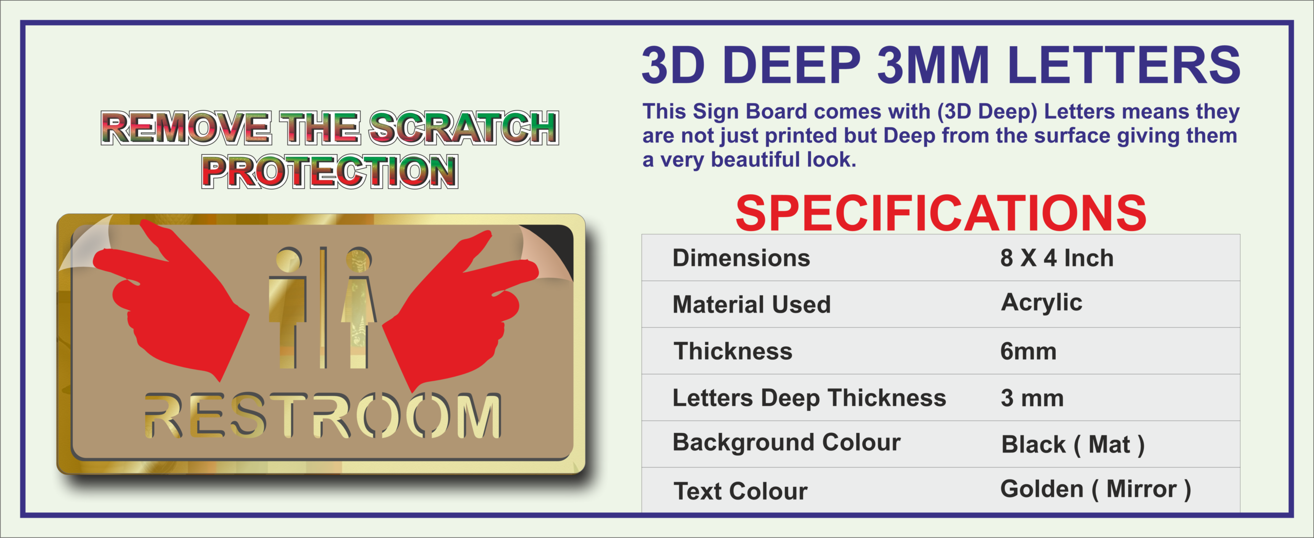 Designed for modern interiors, this premium sign board not only helps visitors easily locate restroom facilities but also enhances the aesthetic appeal of your environment.