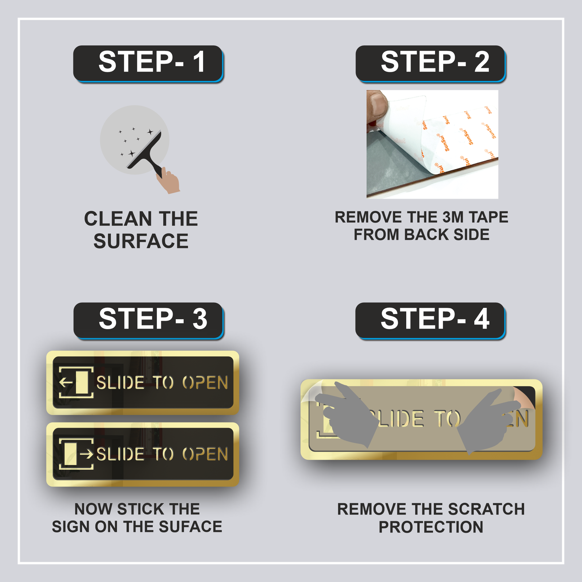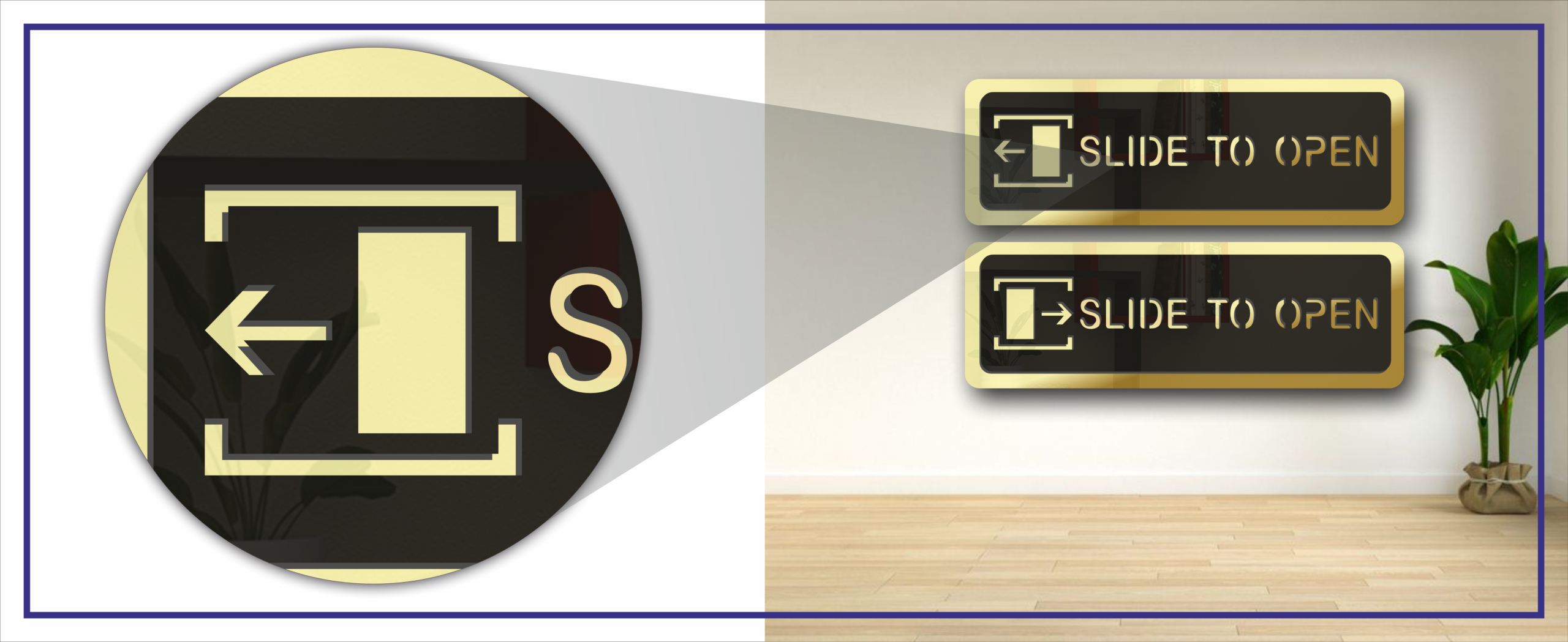 Slide To Open Door Sign Board – Golden Mirror Acrylic | Premium Self-Adhesive Door Instruction Sign