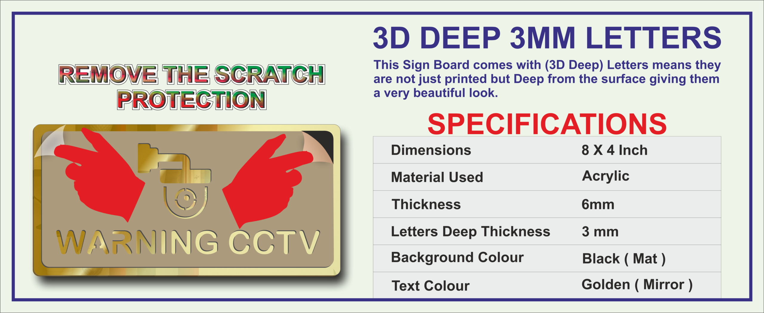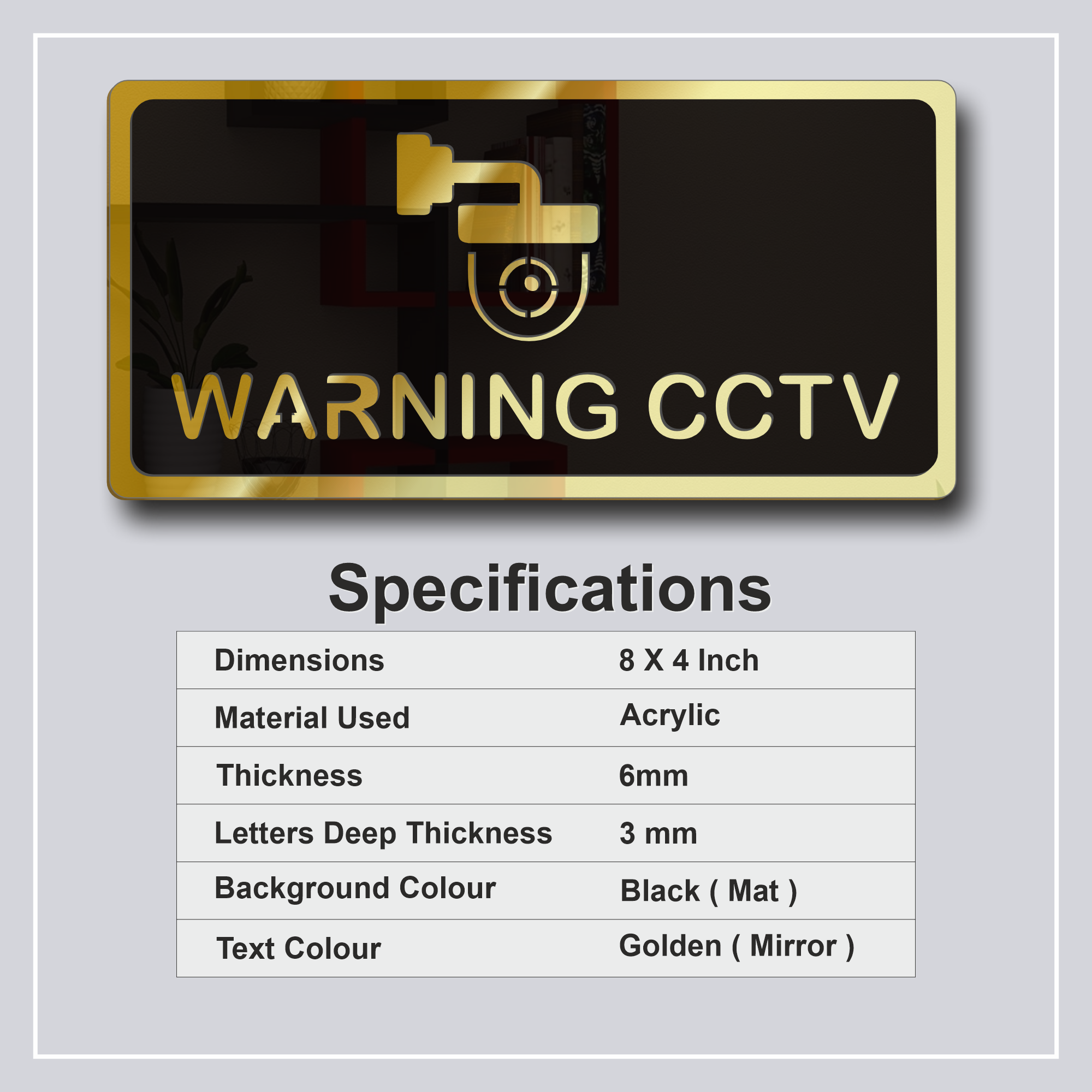 In conclusion, the Golden Mirror Acrylic CCTV Warning Sign Board