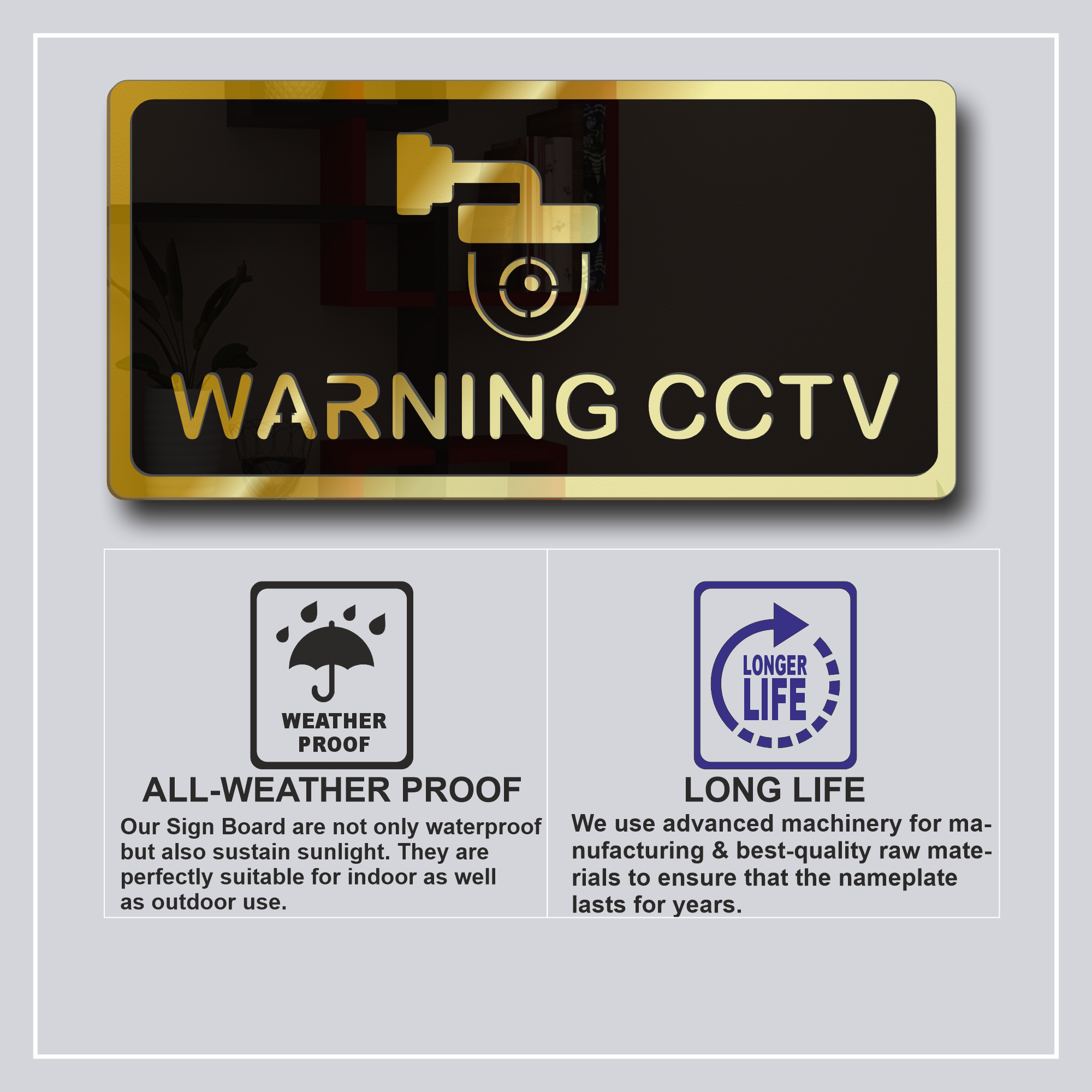 premium CCTV sign, durable warning board, and modern acrylic signage solution.
